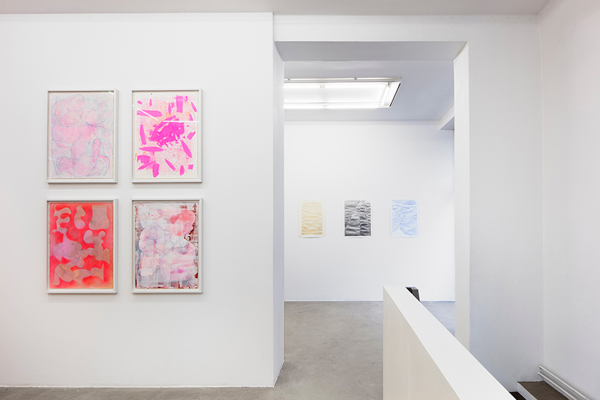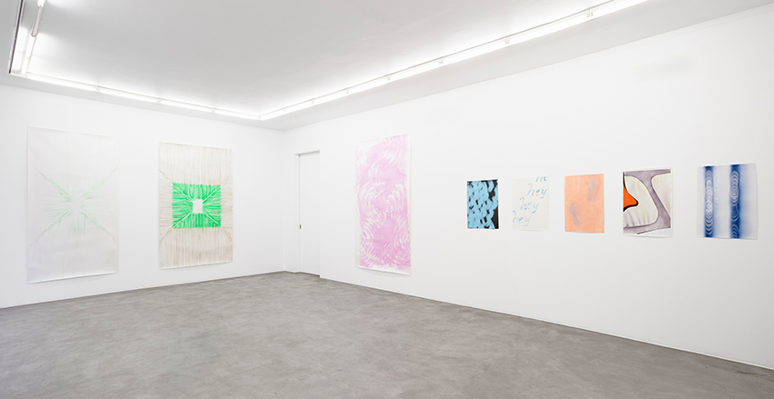 In the gallery, the works build into serial entities, within which – sheet by sheet, from one screen to the next – looping and intertwining traces form paths for the viewer to follow. Through repetition, subtle nuances rise to the surface, forming new chains and layers and, guided by free-flowing forms and trajectories, gently lift into flight.