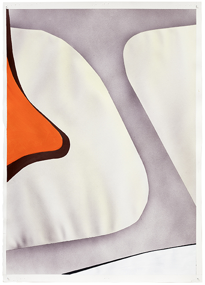 Heli Hiltunen‘s artworks carry a merry, loose and playful presence. Her paper-based works feature energising colours such as orange, red and yellow. The forms are soft and billowy. The works in this exhibition are part of an extensive series that the artist began in 2017 while working in the countryside. She chose oil sticks and drawing as her technique, simply because the supplies were easy to transport. Working at the same summertime desk and in the same summertime room, Hiltunen has allowed her hand to express itself perhaps a little more freely than in the studio. Parallel to drawing and painting, Hiltunen has done farm work, pulled weeds and engaged in summer pastimes before getting back to the sheets of paper. This cycle has produced ideas, refined by the eye and mind, which we now see in the form of these works. A generous shape drawn on the wall in charcoal provides the foundation for the presentation of the drawings.